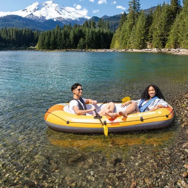 Kényelmes, kétszemélyes csónak stabil padlószerkezettel és három légkamrával a biztonságosabb vízi kikapcsolódásért. A mellékelt pumpa és két evező révén gyorsan használatba vehető, így ideális tóparti pihenéshez, horgászathoz vagy könnyed evezéshez.