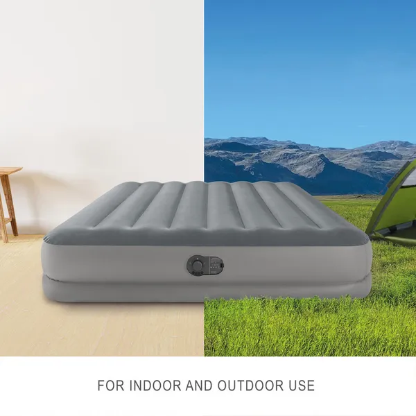 Az INTEX 64114 dupla légmatrac kényelmes és gyors megoldás vendégágyként, utazáshoz, kempinghez vagy nyaralóba. A 203×152×30 cm-es méret két felnőtt számára is tágas fekvőfelületet ad, a velúr felszín pedig kellemes tapintású és segít stabilabban tartani a lepedőt.