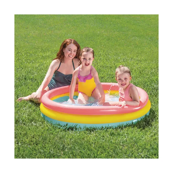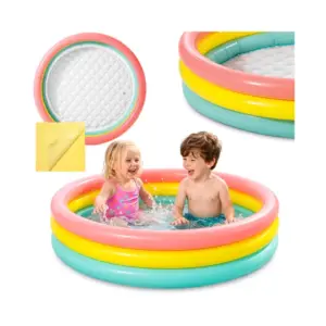 Puha, felfújható aljával és oldalfalaival kényelmesebb, biztonságosabb pancsolást kínál a legkisebbeknek. Kompakt mérete miatt teraszra vagy kisebb kertbe is remek választás, a szivárványszínű kialakítás pedig még vonzóbbá teszi a nyári játékot.