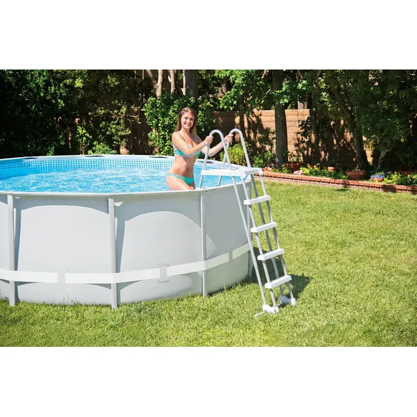 Biztonságos és kényelmes hozzáférést nyújt a 132 cm magas medencékhez csúszásmentes fokokkal és stabil fém vázzal. A levehető fokok és kapaszkodók praktikusabb használatot és nagyobb biztonságot adnak a családi medencézéshez.