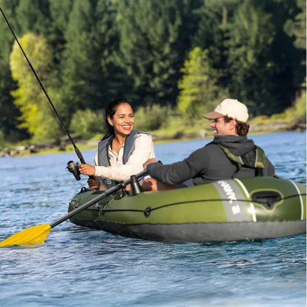 Az INTEX Seahawk 2 felfújható csónak ideális választás 2 fő számára, ha kényelmes és könnyen szállítható megoldást keresnek vízparti kikapcsolódáshoz. Tökéletes nyugodt tavi csónakázáshoz, horgászathoz, nyaralásokhoz vagy rövidebb vízi felfedezőutakhoz. A gyors előkészítésnek és az egyszerű használatnak köszönhetően bármikor spontán vízre szállhat.