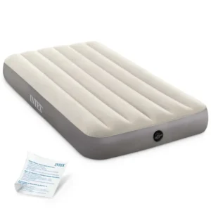 Az INTEX 64101 velúr felfújható matrac kényelmes megoldás vendégágyként otthon, illetve utazáshoz és nyaraláshoz. Tartós PVC-ből készül, a fekvőfelületet puha, kellemes tapintású, vízálló velúr borítja, így komfortos érzetet ad alváshoz és pihenéshez. Semleges bézs színe könnyen illeszkedik a legtöbb enteriőrbe.