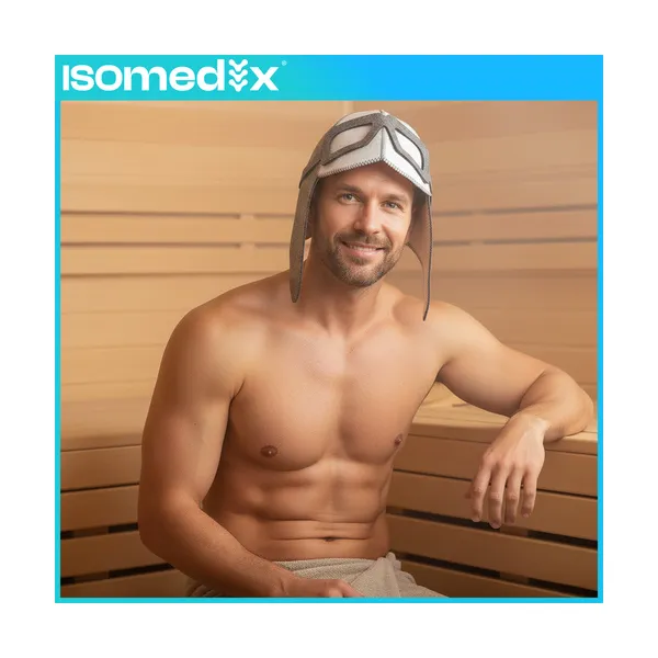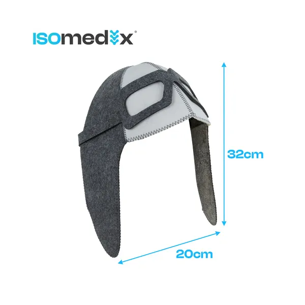 Az ISOMEDIX aviátor fazonú nemez szaunasapka kifejezetten arra készült, hogy szaunázás közben hatékonyan védje a fejbőrt és a hajat a túlmelegedéstől és a kiszáradástól. A vastag, jól szigetelő nemez segít megőrizni a komfortérzetet magas hőmérsékleten is, miközben a sapka szabása a fület, a homlokot és a tarkót is takarja.