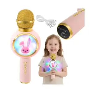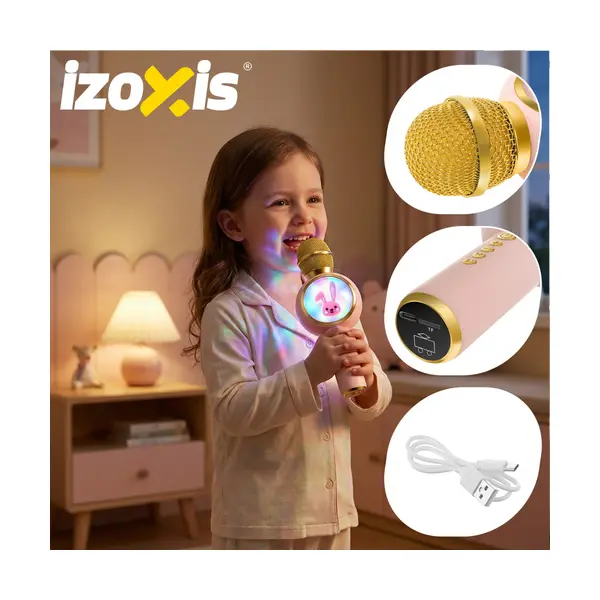 Izoxis vezeték nélküli gyerek karaoke mikrofon, 5W, RGB, rózsaszín