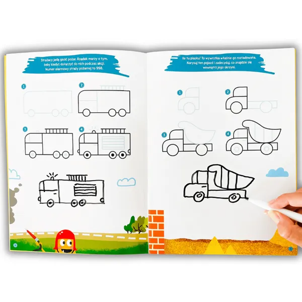 Lépésről lépésre segít járműveket rajzolni, miközben fejleszti a finommotorikát, a szem–kéz koordinációt és a koncentrációt. A törölhető filccel bátran lehet újrakezdeni és javítani, a feladatok és érdekességek pedig sokáig lekötik a gyerekeket.