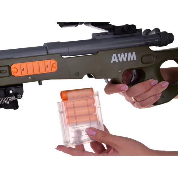 Játék mesterlövész puska habszivacs lőszerrel, távcsővel és tárral, 88 cm