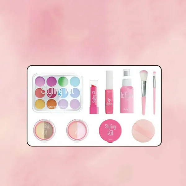 Színes, valósághű játék sminkkészlet kislányoknak, amely kreatív és biztonságos szerepjátékhoz készült. A szett elemei kozmetikum-utánzatok: nem festik a bőrt és nem koszolják össze a ruhát, így a játék nyugodtan mehet otthon vagy utazás közben is.