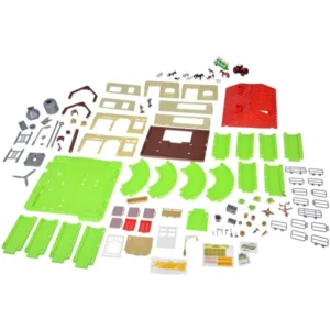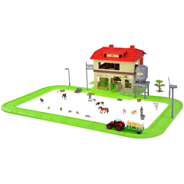 Nyitható pajtával, működő silóval és traktorral felszerelt farmkészlet, amely valósághű jelenetekkel fejleszti a képzelőerőt és a finommotorikát.