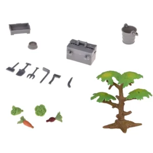 • Szerszámok és kiegészítők: lapát, villa, fejsze, kapa, vödör, láda, zöldségek, szénabála.