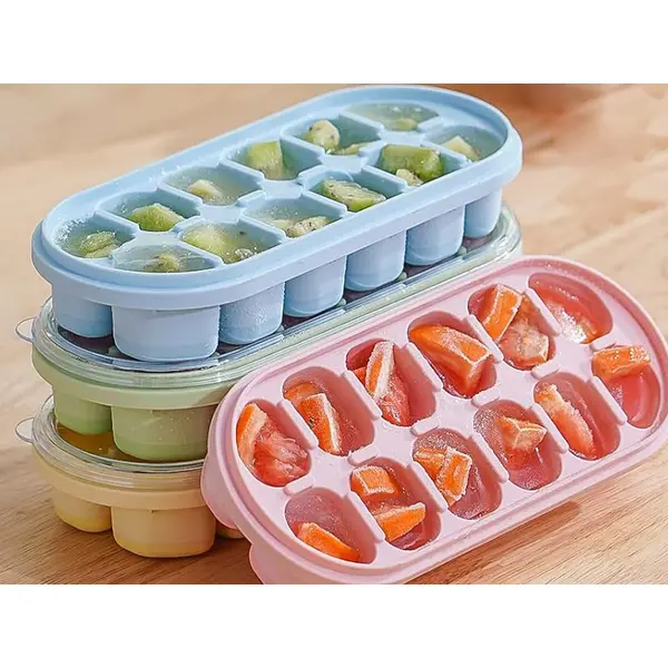 Készíts jégkockát gyorsan és kényelmesen ezzel a 12 rekeszes jégkockatartóval! A stabil műanyag forma és a rugalmas szilikon alj kombinációja megkönnyíti a kockák kiemelését, a fedél pedig segít a tiszta, szagmentes fagyasztásban – otthonra, irodába vagy bulikhoz is ideális.