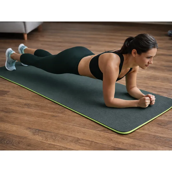 A szőnyeg kétoldalas kialakítású, így az edzés típusához és a személyes preferenciákhoz igazítható a felület. A zöld szín friss, energikus megjelenést ad, a praktikus hordtáska fogantyúval pedig megkönnyíti a szállítást és a tárolást.