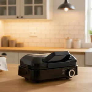 Egyszerre két nagy gofrit süthetsz gyorsan, az állítható hőfokkal pedig pontosan olyan ropogósra készítheted, ahogy szereted. A tapadásmentes felület megkönnyíti a kiemelést és a tisztítást, a fedélzár és a csúszásgátló talpak pedig stabil, biztonságos használatot adnak.