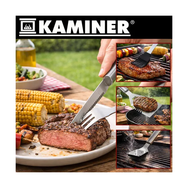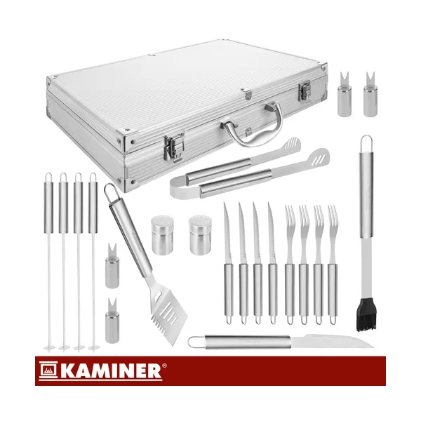 Kaminer 26 részes rozsdamentes grill eszközkészlet XXL alumínium táskában