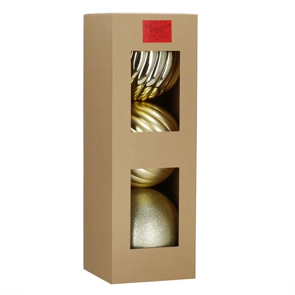 Elegáns arany árnyalatával látványos fókuszpont a fán, a különböző felületek pedig gazdagabb, ünnepibb összhatást adnak. A műanyag kivitel ideális gyermekes családokhoz és háziállatok mellé is, mert tartósabb és biztonságosabb a hagyományos üveg díszeknél.