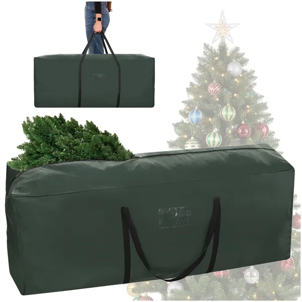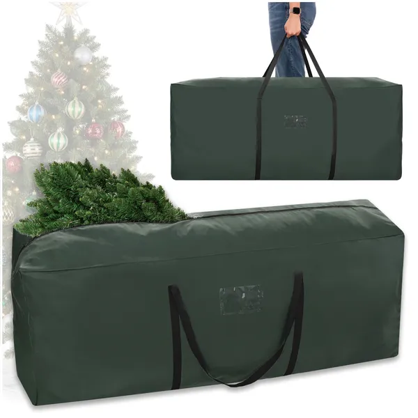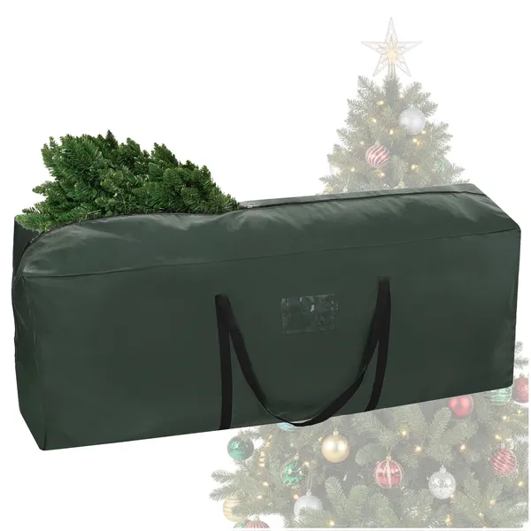 Felejtse el a szakadt kartondobozokat: ezzel a prémium, sötétzöld karácsonyfa tároló táskával biztonságban tudhatja a műfenyőt a következő ünnepekig.