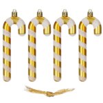 A fehér-arany cukorpálca díszek törhetetlen műanyagból készültek, így bátran dekorálhatod velük a karácsonyfát, akár kisgyermekek vagy háziállatok mellett is. Csillámos és félmatt felületük eleganciát visz az ünnepi dekorációba, miközben a 4 darabos csomag azonnal egységes stílust teremt.