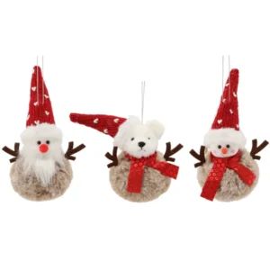 Karácsonyfadísz függő figura (hóember/mikulás/medve) 10×12 cm, 12 db