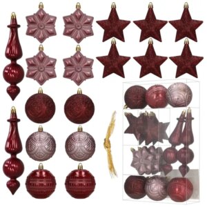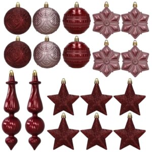 A törhetetlen műanyag karácsonyfadísz válogatás látványos lila-bordó árnyalatokban, különféle méretekben kínál fényes, félmat és csillámos gömböket, csillagokat, valamint elegáns csúcsdíszeket. A 18 darabos szett mellékelt akasztózsinórral érkezik, így pillanatok alatt, biztonságosan és stílusosan öltöztetheted ragyogó ünnepi fénybe a karácsonyfát otthonodban.