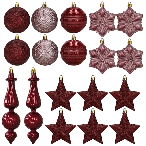 Karácsonyfadísz gömb- és csillag szett, 18 db, lila-bordó, műanyag