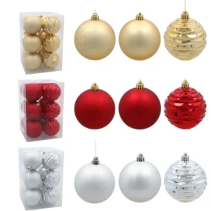 Törhetetlen, 8 cm-es karácsonyfagömbjeinkkel biztonságosan, mégis elegánsan díszítheted a fát. A 12 darabos, piros–arany–ezüst szett harmonikus, ragyogó összhatást teremt.