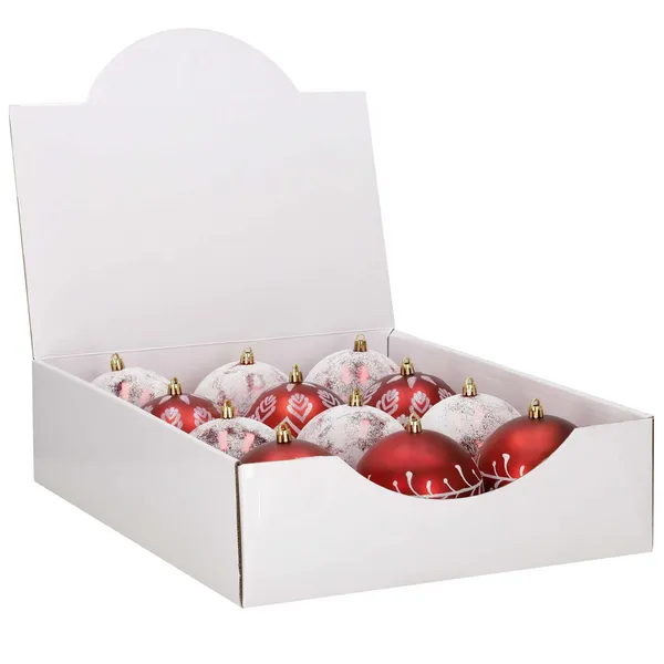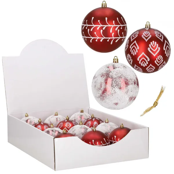 Karácsonyfadísz gömb szett 12 db 9,5 cm, piros-fehér, törhetetlen