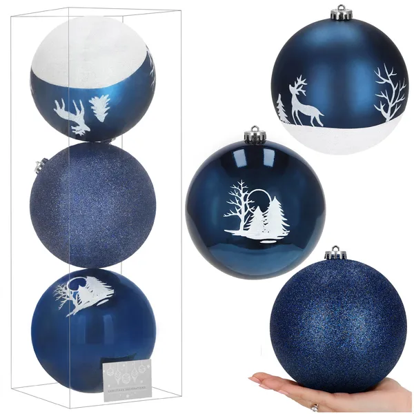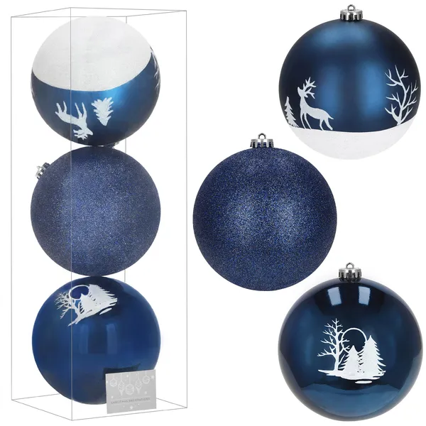 Karácsonyfadísz gömb szett, 15 cm, 3 db, kék-fehér, törésbiztos műanyag