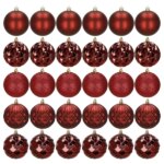 Varázsolja otthonát ünnepi ragyogással ezzel a 30 darabos, piros árnyalatú karácsonyfadísz-szettel! A különféle felületeknek köszönhetően a gömbök izgalmas fényjátékot adnak, miközben a törhetetlen műanyag alapanyag gondtalan díszítést biztosít családoknak, vendéglátóknak és kereskedelmi tereknek egyaránt.