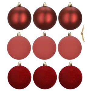 Az ünnepi hangulat kulcsa a gondosan megválasztott dísz. A 9 darabos, 8 cm átmérőjű bordó és meggyvörös gömbkészlet törhetetlen műanyagból készül, így biztonságos gyerekek és háziállatok mellett is. Háromféle felület – félmat, matt és bársonyos – gondoskodik a változatos, mégis harmonikus megjelenésről.