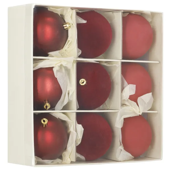 Karácsonyfadísz készlet, 9 db 8 cm, bordó-meggyvörös törhetetlen