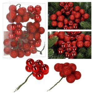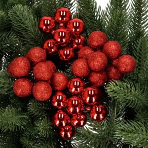 Törhetetlen, piros mini gömbök csillámos és fényes felülettel, hogy gyorsan ünnepi hangulatot teremts otthon. Az 54 darabos készlet rögzített drótokkal könnyen felhelyezhető, így stabilan a helyén marad a fán, koszorún vagy asztaldíszen.