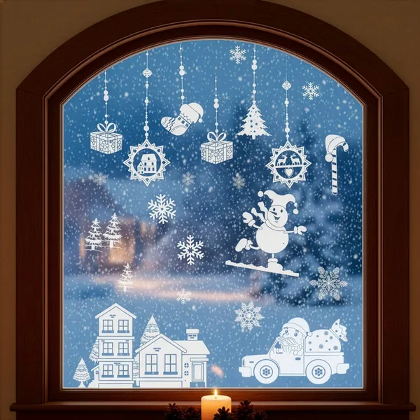Karácsonyi ablakmatrica szett ünnepi dekoráláshoz: egyszerűen felragasztható, látványos mintákkal teszi hangulatossá az ablakot, tükröt vagy más sima felületet.