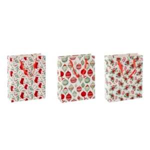 A tartós, újrahasznosítható papírból készült, 18×24×8 cm-es ajándéktasak gazdag karácsonyi szimbólumokkal díszítve ad ragyogó, ünnepi keretet bármely mutatós meglepetés átadásának. Vegyes mintái, erős zsinórfüle és megbízható oldalerősítése gyors, kényelmes és környezettudatos csomagolást tesznek lehetővé, amikor utolsó pillanatban, mégis stílusosan, könnyedén és biztonságosan ajándékoznál.