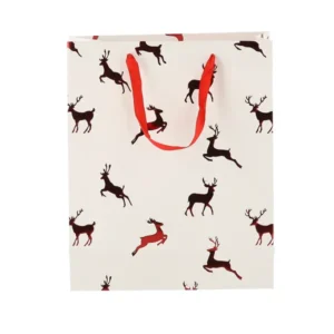Dobd fel az ünnepi hangulatot ezzel a bájos, rénszarvas mintás karácsonyi ajándéktasakkal! A 26×32×10 cm-es méret ideális könyvek, kozmetikumok, kisebb ruhadarabok vagy játékok stílusos átadásához.
