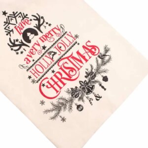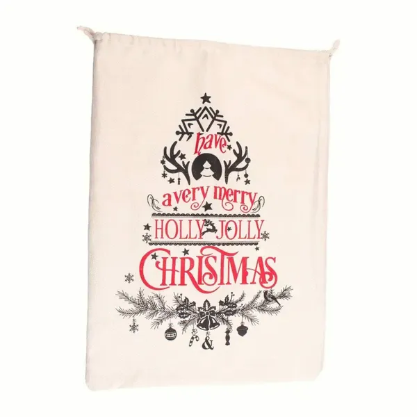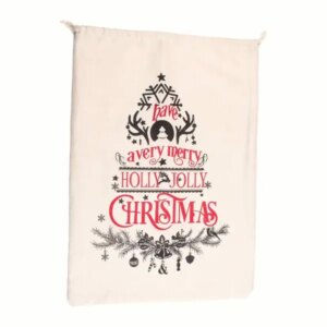 A zsinóros összehúzás biztonságosan zár, és megkönnyíti a pakolást, szállítást. A feliratos minta vidám, karácsonyi hangulatot ad a csomagolásnak, így a zsák dekorációként is szépen mutat a fa alatt.