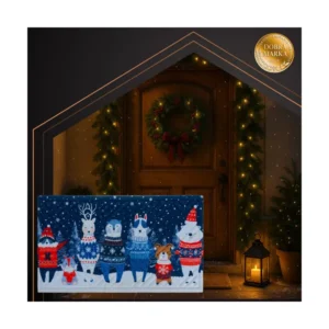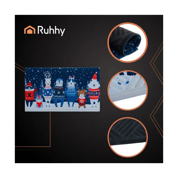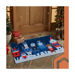 Ez a karácsonyi bejárati lábtörlő praktikus és dekoratív megoldás, hogy a bejáratnál maradjon a sár, por és nedvesség, miközben ünnepi hangulatot teremt. Színes, téli mintája barátságosan fogadja a vendégeket, a strapabíró felület pedig a mindennapi használatot is jól bírja a téli szezonban és azon túl.