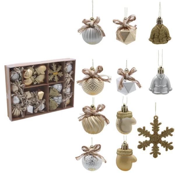 Karácsonyi dísz szett mix, 24 db (12 készlet), törhetetlen
