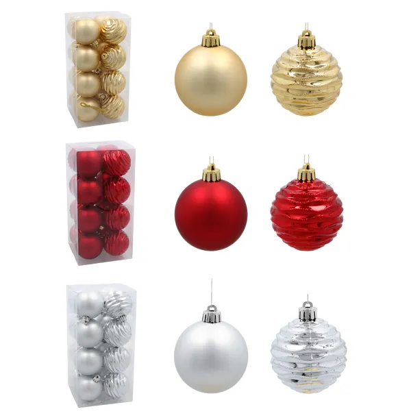Egyszerűen feldobhatod a fát ezzel a 16 darabos, 6 cm-es gömbkészlettel, amely piros, arany és ezüst árnyalataival minden dekorációhoz illik. Könnyű, törésálló műanyagból készült, így gyermek- és kisállat-barát.