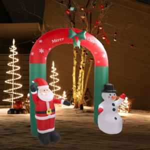 A 240 cm magas, LED-del megvilágított felfújható karácsonyi kapu pillanatok alatt felállítható, és ellenáll az időjárásnak. Vendégeidet egy mosolygó Mikulás és hóember fogadja, így otthonod vagy üzleted már messziről ünnepi hangulatot áraszt.