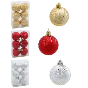 Törhetetlen, 6 cm-es gömbdíszek piros, arany és ezüst színekben, melyek előfűzött akasztóiknak köszönhetően pillanatok alatt a fára kerülnek, és évről évre megbízhatóan ragyogó ünnepi hangulatot biztosítanak.