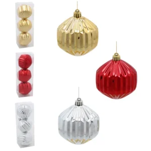Tedd ragyogóvá az ünnepi dekorációt ezzel a háromdarabos karácsonygömb szettel, amely 8 cm átmérőjű, piros, arany és ezüst színű díszeket tartalmaz. A fényes felület és az egységes méret elegáns, harmonikus összhatást biztosít minden karácsonyfán vagy kreatív asztaldíszen.