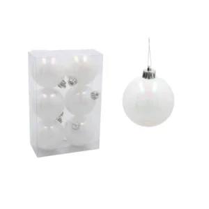 Elegáns, fehér gyöngyház fényű karácsonyi gömbjeinkkel pillanatok alatt ünnepi hangulatot varázsolhatsz otthonodba. A 6 cm átmérőjű, polírozott felületű díszek tökéletesen illenek közepes vagy nagyobb fákra, koszorúkra és asztali dekorációkba.