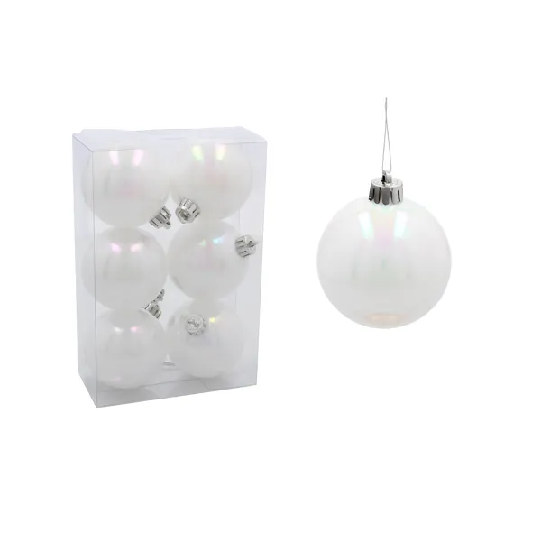 Karácsonyi gömb szett 6 db | 6 cm | fehér gyöngyház fényű