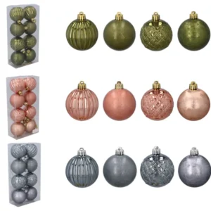 Elegáns olíva, rezes és grafit árnyalatú gömbdekor készlet, amely 8 törésálló, 6 cm-es díszből áll, előfűzött akasztóval a gyors felhelyezéshez. Harmonikus színpalettájával emeli a karácsonyfa fényét, és stílusos kiegészítője lehet asztaldíszeknek vagy ajándékcsomagoknak is.