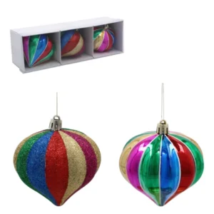 Lendületes, ünnepi hangulat pillanatok alatt: a 3 darabos, 8 cm átmérőjű karácsonyi gömbdíszek élénk színű szalagokkal érkeznek, hogy a fa minden ágára szikrát vigyenek. A csomag összesen 12 készletet tartalmaz, így ideális nagyobb fák díszítéséhez, irodák, üzletek vagy családi összejövetelek dekorálásához.