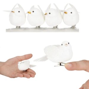 A 4 darabos, csillámos fehér madárszett praktikus fémcsipesszel pillanatok alatt feldobja a karácsonyfát, koszorút vagy ajándékcsomagot, miközben könnyű habszivacs anyaga nem húzza le az ágakat. Ragadd meg a ragyogó téli hangulatot és alakítsd át dekorációdat egyetlen mozdulattal!