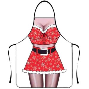 Ünnepi hangulatú konyhai kötény, amely könnyű, kényelmes és nem akadályoz főzés közben. A nyakpánt és a hátul megköthető pántok biztos illeszkedést adnak, a tartós poliészter pedig könnyen tisztítható, így ideális a karácsonyi sütés-főzéshez.