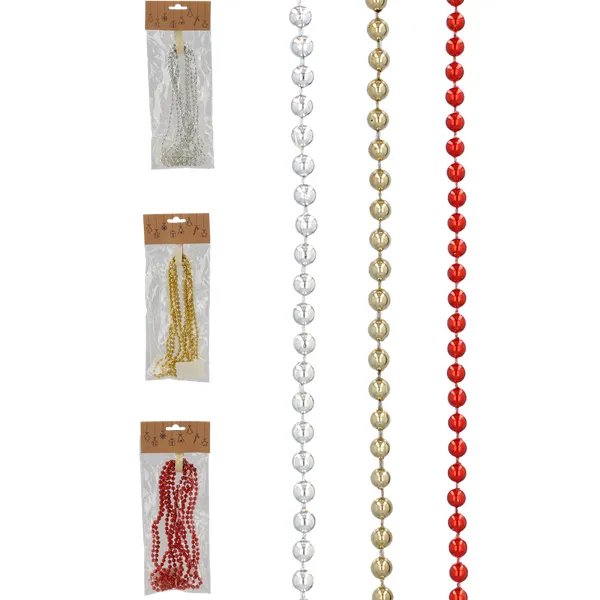 Varázsolj ünnepi hangulatot otthonodba ezzel a sokoldalúan felhasználható, színes műanyag gyöngyfüzérrel! A 2,7 méter hosszú, 6 mm átmérőjű gyöngyökből álló lánc könnyedén tekerhető a karácsonyfára, koszorúkra, de akár ablakok, ajtók vagy asztaldíszek dekorálására is alkalmas.