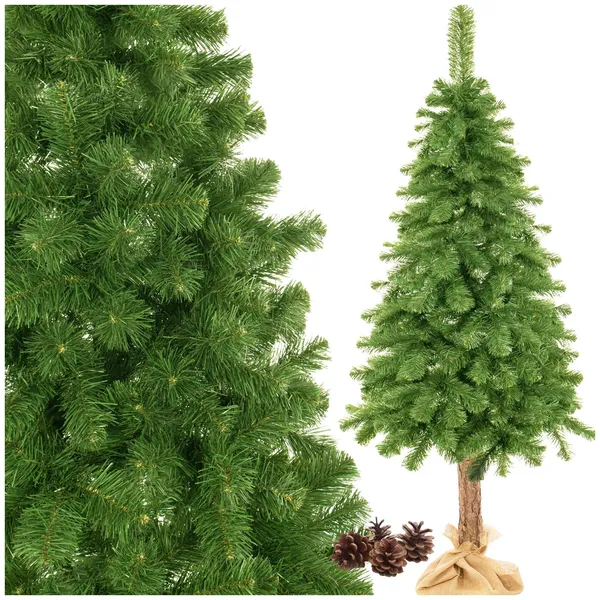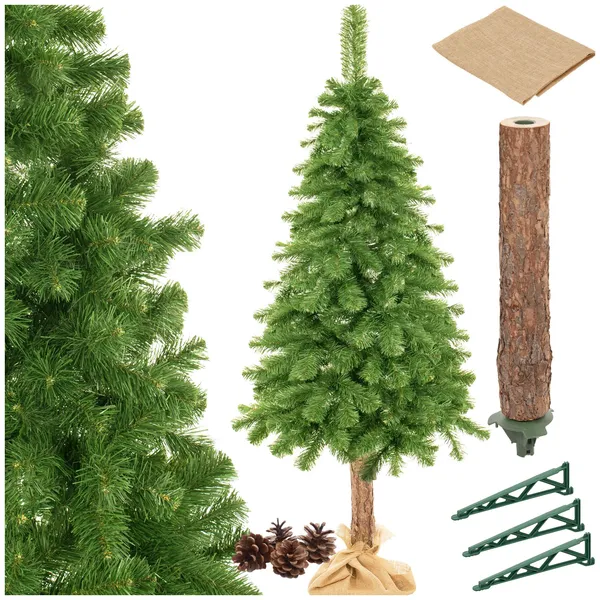Karácsonyi műfenyő természetes fatörzsön, 180 cm, PVC, tobozokkal