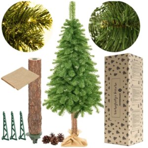 Élvezze az ünnepi hangulatot ezzel a természetes fatörzsre épített, 180 cm magas műfenyővel, amely élethű tűleveleivel és valódi tobozaival a valódi erdei fenyő látványát kelti, miközben nem hullajtja a leveleit és évekig díszíti otthonát.