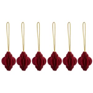 Karácsonyi papírgömb dísz szett, bordó, 6 db, 4×3 cm arany zsinórral
